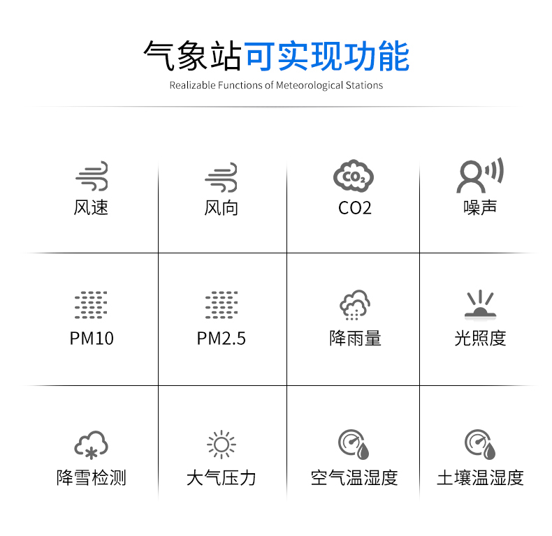 8、标准RS485、GPRS/4G、以太网通讯功能,多种通讯方式与气象站接收服务器组成气象监测系统。
