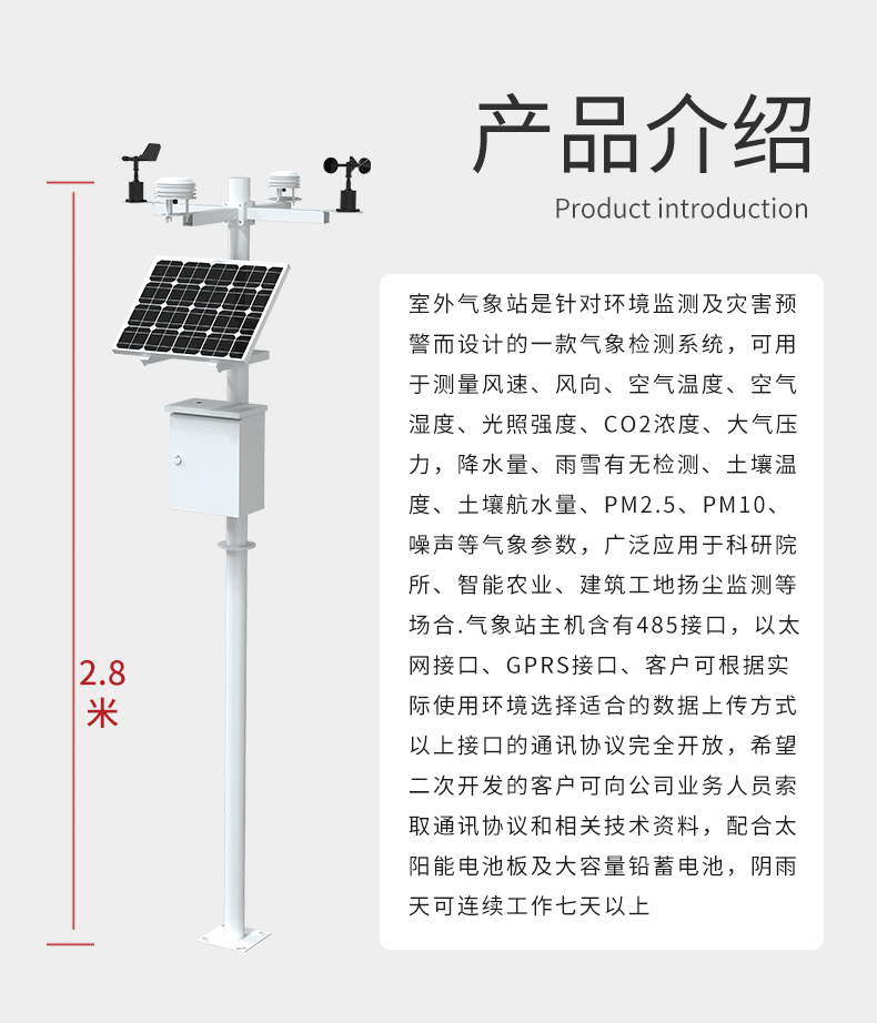 9、完善的防雷击、抗干扰等保护措施。适用于各种恶劣的野外环境,低功耗、高稳定性、高精度、可无人值守。