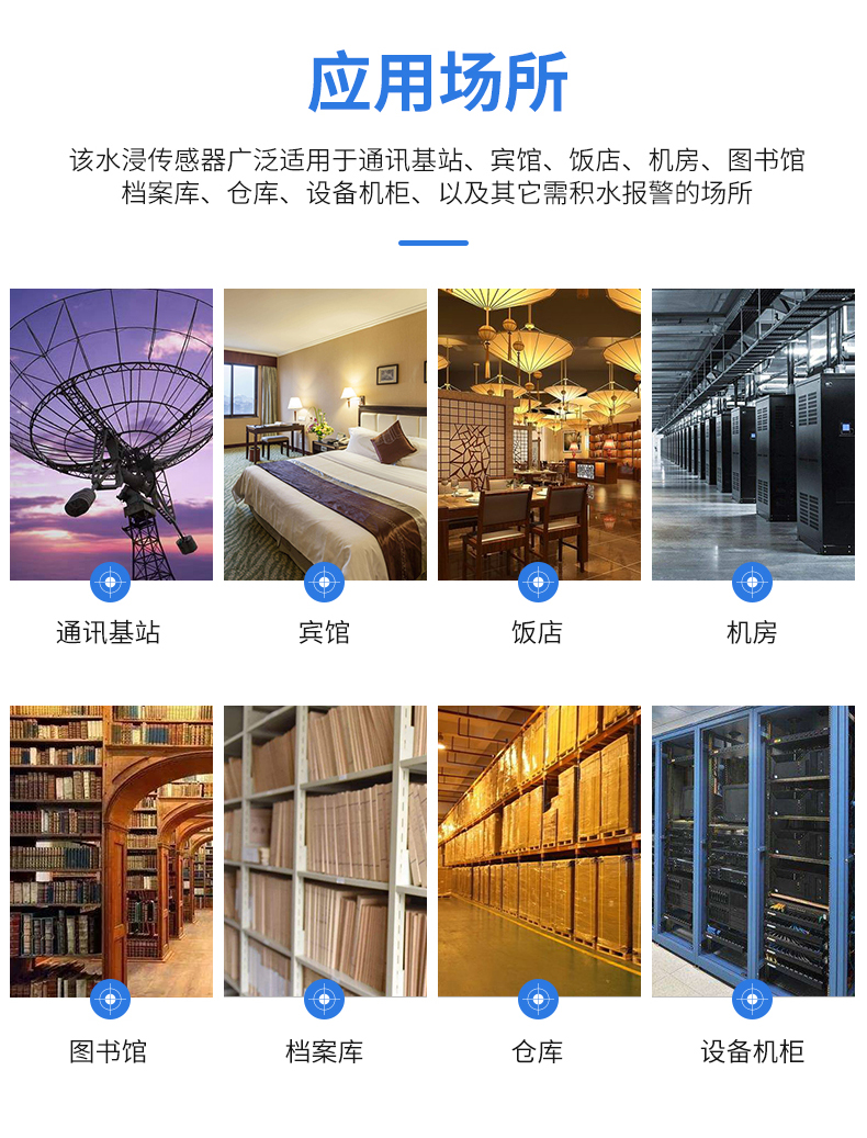 水浸传感器是检测被测范围是否发生漏水的的传感器,一旦发生漏水,立即发出警报,防止漏水事故造成相关损失和危害。水浸传感器广泛应用于数据中心、通信机房、发电站、仓库、档案馆等一切需要防水的场所。