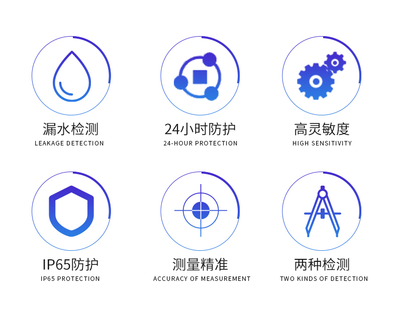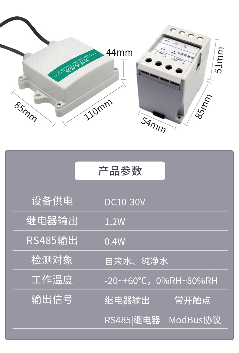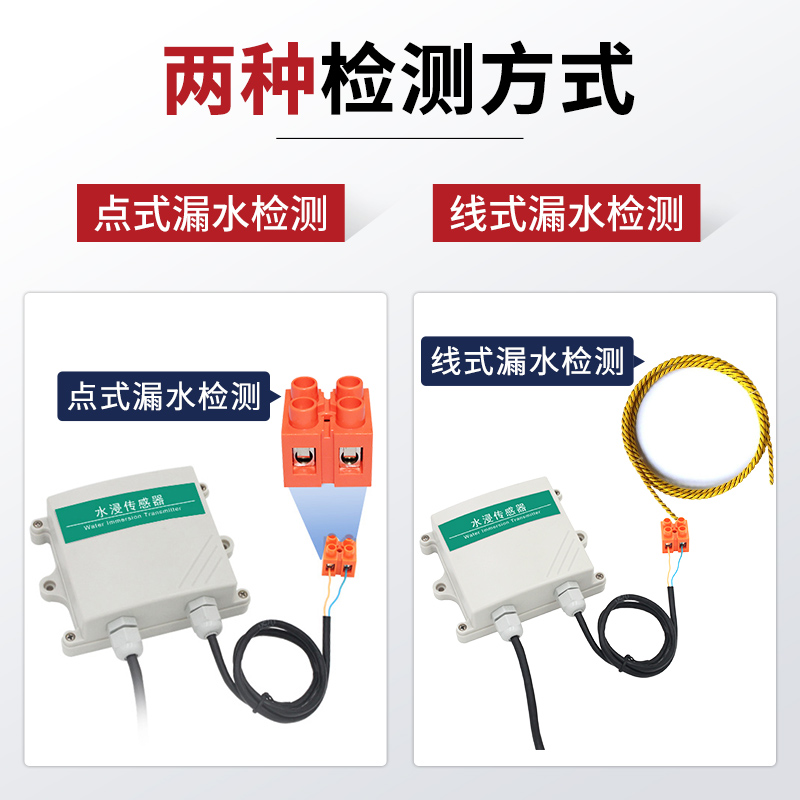 水浸传感器基于液体导电原理,用电极探测是否有水存在,再用传感器转换成干接点输出。