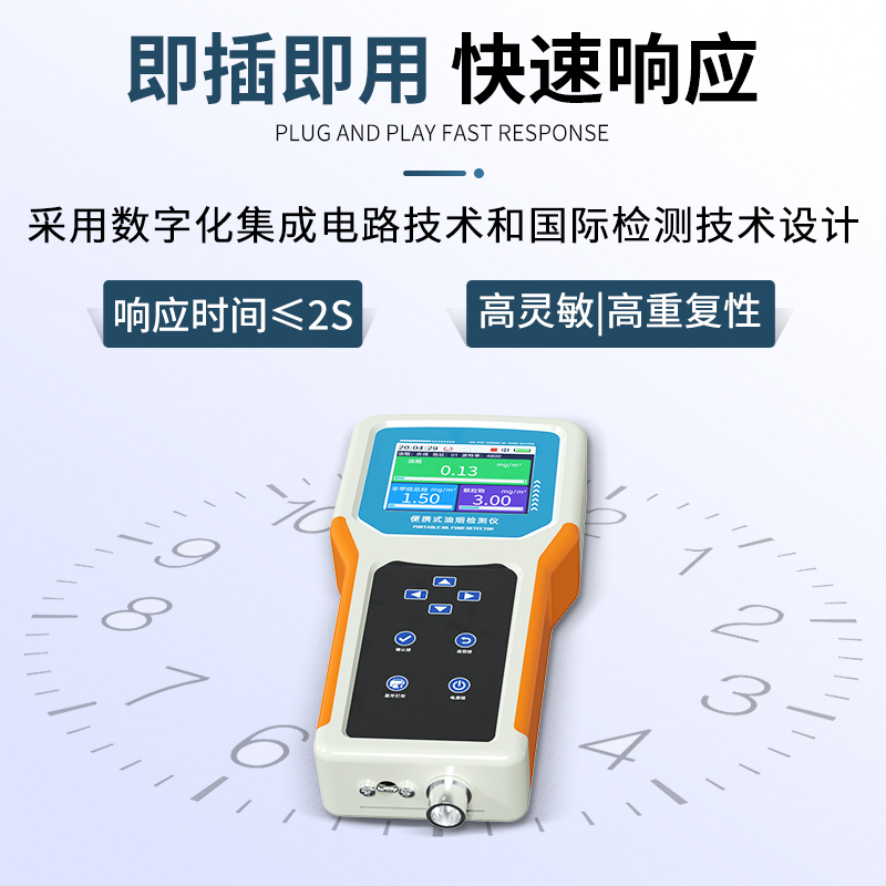 便携式油烟检测仪满足JJG 680-2007《烟尘采样器检定规程》、JJG 518-1998《皮托管检定规程》、GB16157-1996《固定污染源排气中颗粒物测定与气态污染物采样方法》、HJ/T48-1999《烟尘采样器技术条件》、GB18483《饮食业油烟排放标准》的要求,仪器为一体式设计,重量轻,便于随时携带,可以实现全自动测量,配备高精度传感器和采样泵,具有寿命长、数据准确的特点;采样头枪管可旋转,在检测烟道时从不同方向进行调整,同时配备快捷按键,方便快捷。