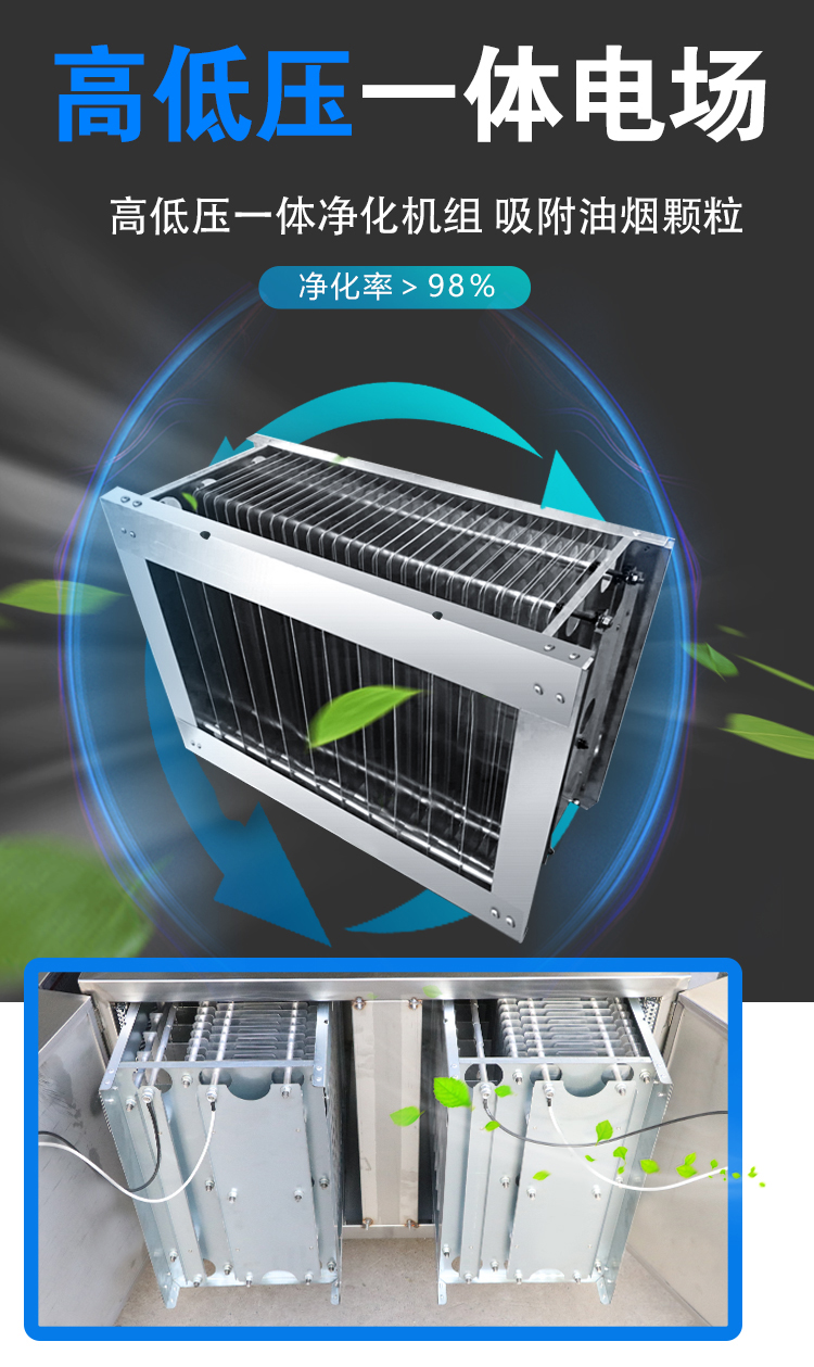 油烟净化器是指油烟废气的处理装置。油烟净化器主要用于厨房低空排放油烟的净化治理;用于宾馆、饭馆、酒家、餐厅以及学校、机关、工厂等场所;食品油炸、烹任加工行业;油溅热处理车间、油雾润滑车间、工件焊接车间以及烯油锅炉排放等工业场合。